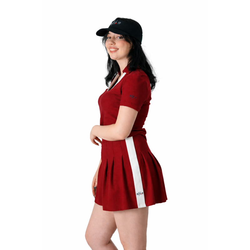 SET PADELLISTA EN BORDEAU: composé d'un polo demi manche et d'une jupe-short même couleur