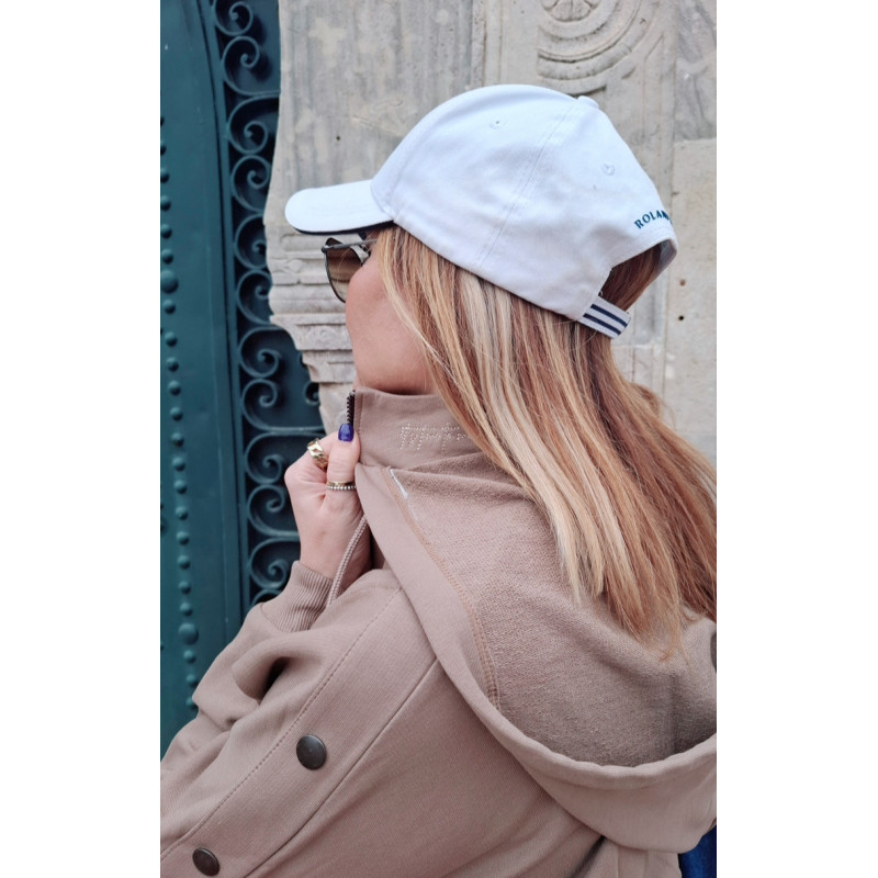 Le sweat a une fermeture zippée sur le devant, avec des boutons pression décoratifs sur les deux cotés. Il est fait avec un tissus appelé molleton très doux et confortable, avec un mélange de matières ton sur ton, une coupe confortable qui épouse la silhouette sans la contraindre .