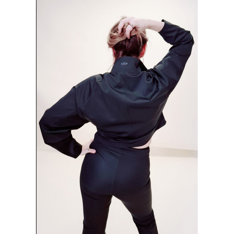Le haut zippé se distingue par sa coupe nette et moderne. Son col montant apporte du caractère à la silhouette tout en offrant une touche enveloppante très agréable à porter. Les deux poches à rabat ajoutent une dimension pratique et tendance, avec un esprit légèrement utilitaire qui structure l’ensemble. Au dos, en haut, le logo en transfer signe la pièce avec discrétion et élégance.